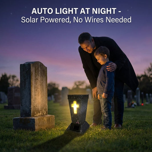 ♥️Longing for the past-Solar Cemetery Vase with LED Cross Light